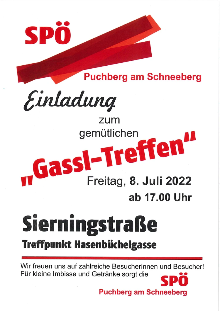 Gasslfest der SPÖ PUCHBERG.. 23.06.2017..Treffpunkt in der Sierningstraße... gemütliche, lustige Runde.. gute Gespräche.. so solls sein !